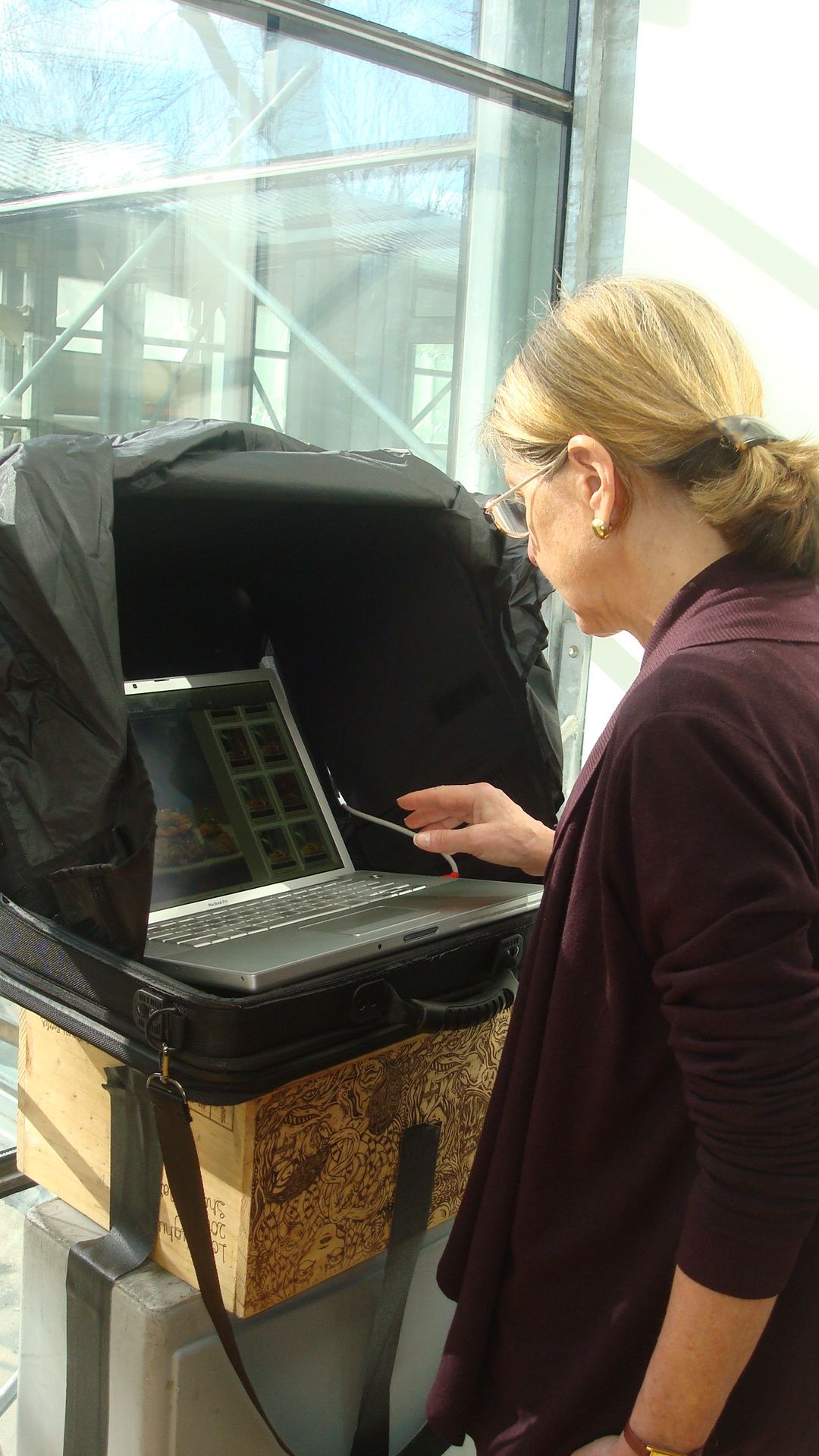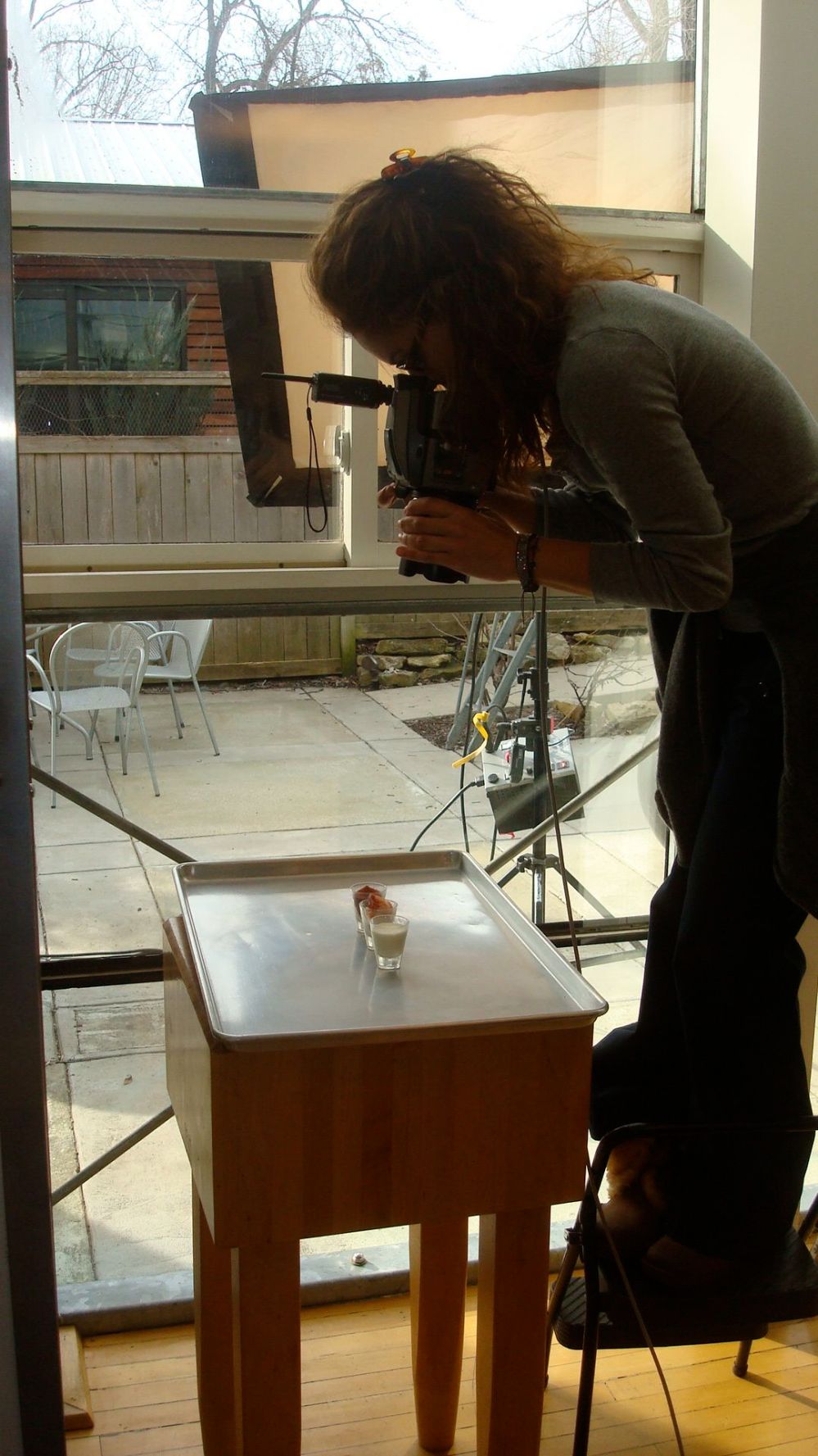 I love the above photo because it shows much of what goes on around what is actually being photographed. The chair being held up outside on the patio provided a background for the finished shot.
