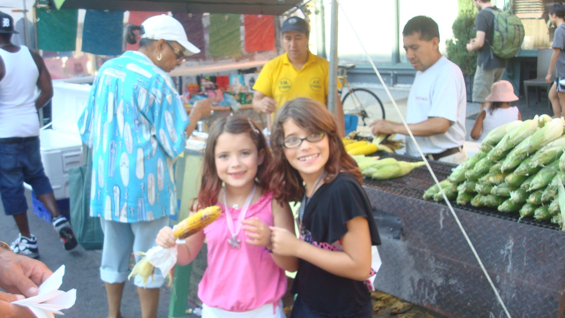 I run into people often who tell me how much they miss eating at our house. Thank you, and I hope that our cookbook helps relive a fond memory of eating with us. Reliving a good memory extends the pleasure out of any one experience, so I’m all for it! In that spirit, here is a shot of our beautiful girls in New York eating that corn I wrote of recently.